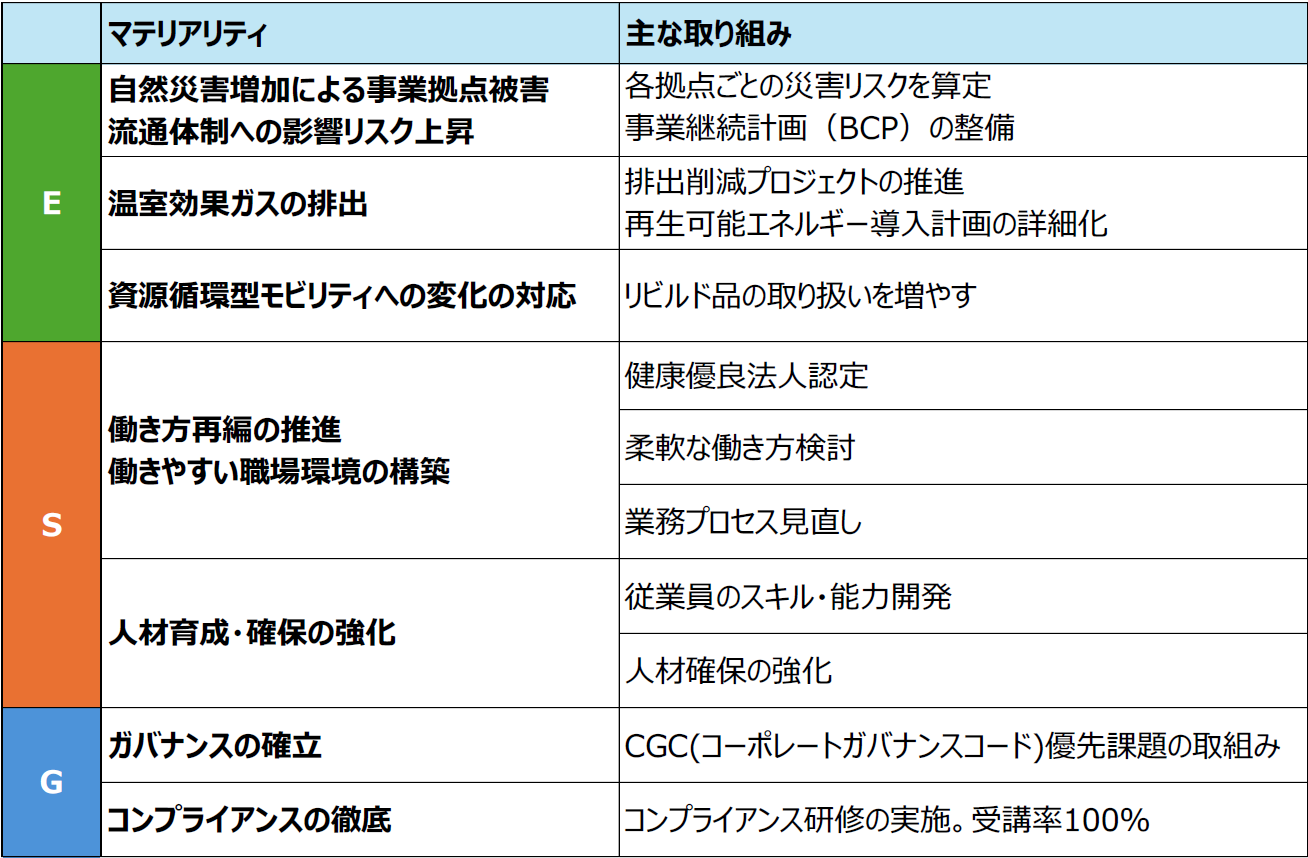 以下のマテリアリティを特定し、具体的な施策を開始しています。